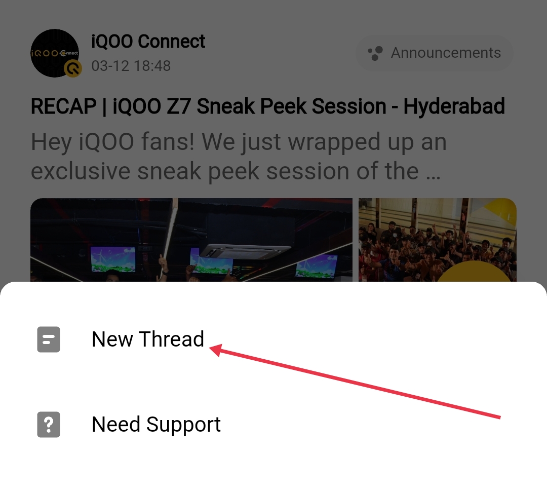 A new window will Pop Up from the bottom, then click on the 'New Thread'.