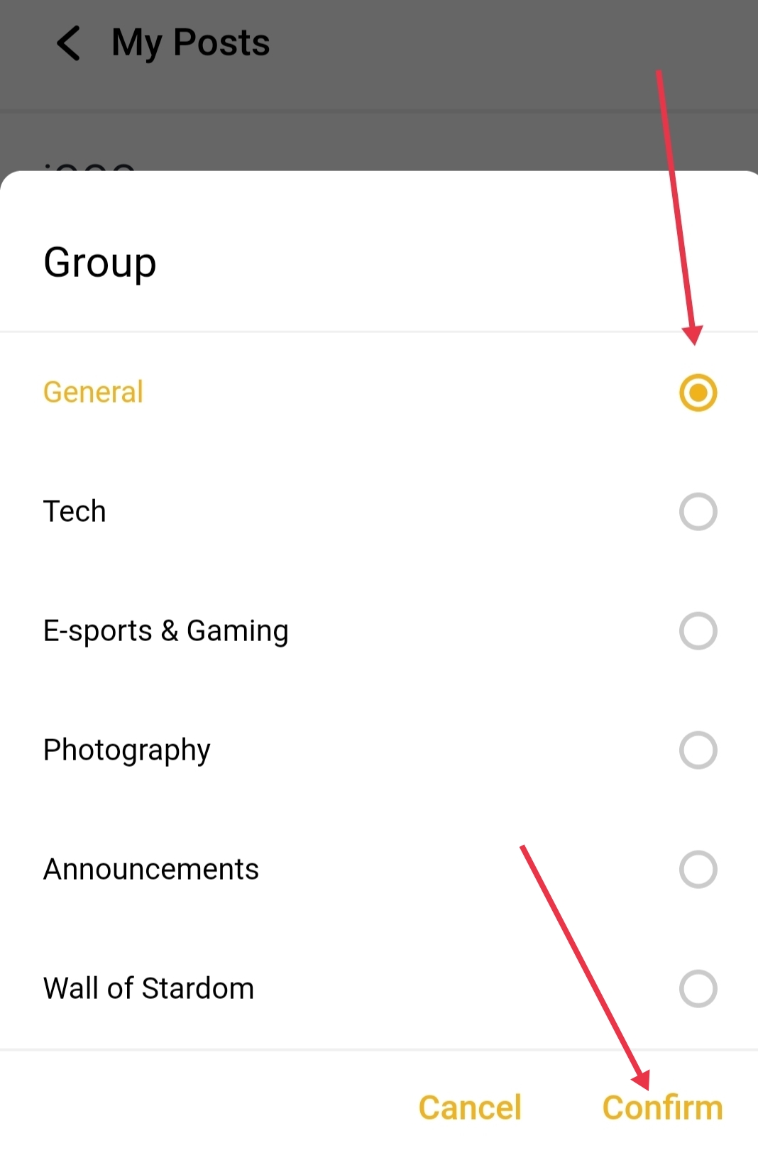 Write your thread and select the Section (in which you want to post) from the bottom left corner as shown below , then click on the 'confirm' icon.