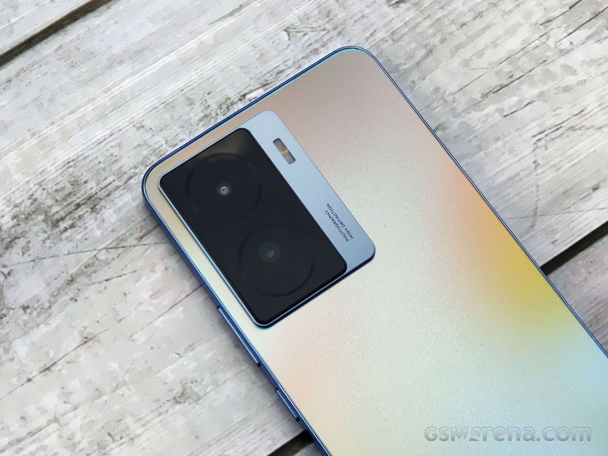 Turn the iQOO Z7 around, and you see a rectangular two-step camera island covering slightly more than 50% of the panel's width. The top plate has a glossy finish and houses the 64MP primary camera with OIS and 2MP depth sensor. The second one has a matte finish and sports an LED flash.