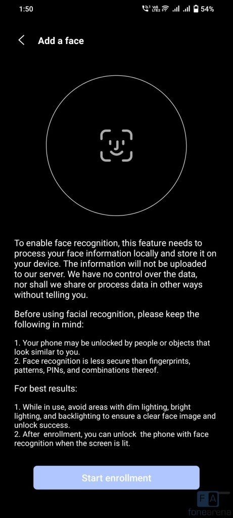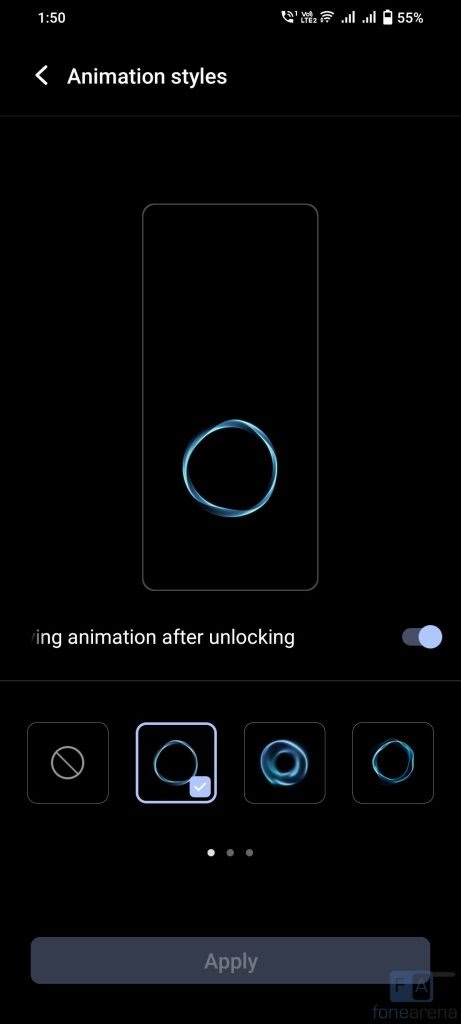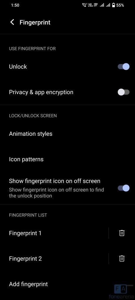 The phone has an in-display fingerprint sensor which immediately unlocks the phone just by keeping your finger on the sensor. There are different animation styles that display when you unlock, which you can disable. The phone also has face unlock that can unlock the phone in seconds, but it is not as secure as fingerprint.