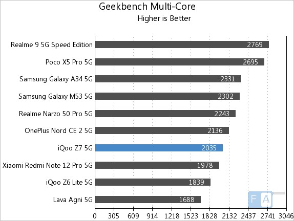 As you can see in the benchmarks, the iQOO Z7 5G powered by the Dimensity 920 chip outperforms the Snapdragon 695, but the Dimensity 1080 and Snapdragon 778G-powered phones are slightly better.