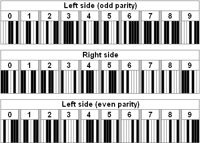 It stores numeric data(0-9) in binary form and once the data is stored, you can read the information in it by scanning it. For every number, 7 vertical lines are chosen. Every number has a unique set of patterns. So whenever the barcode reader throws a beam of laser, the ray that hits the white portion reflects back and returns to the reader, and the ray that hits the black region is absorbed. When the laser returns after reflection, it is represented as 1, and where the ray doesn't return, it is represented as 0.