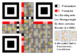 The 3 big squares at the corners are there for alignment, and the rest of the area inside it contains numbers. Now if an area is black that means the numbers in that area are selected. This works on ASCII Codes. ASCII Codes are such codes in which each character has a specific numeric value. Eg: ‘A’ is denoted by 65 in ASCII. So the numbers in the black marked area of a small region mean the sum of the numbers which are marked black. That would be converted to ASCII values to get the information.