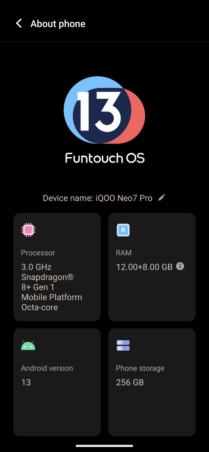 iQOO Neo 7 pro Comes with Android 13 based Funtouch OS 13 , out of the box, Funtouch OS is well Optimised, wich is nearly equal to Stock Android OS.