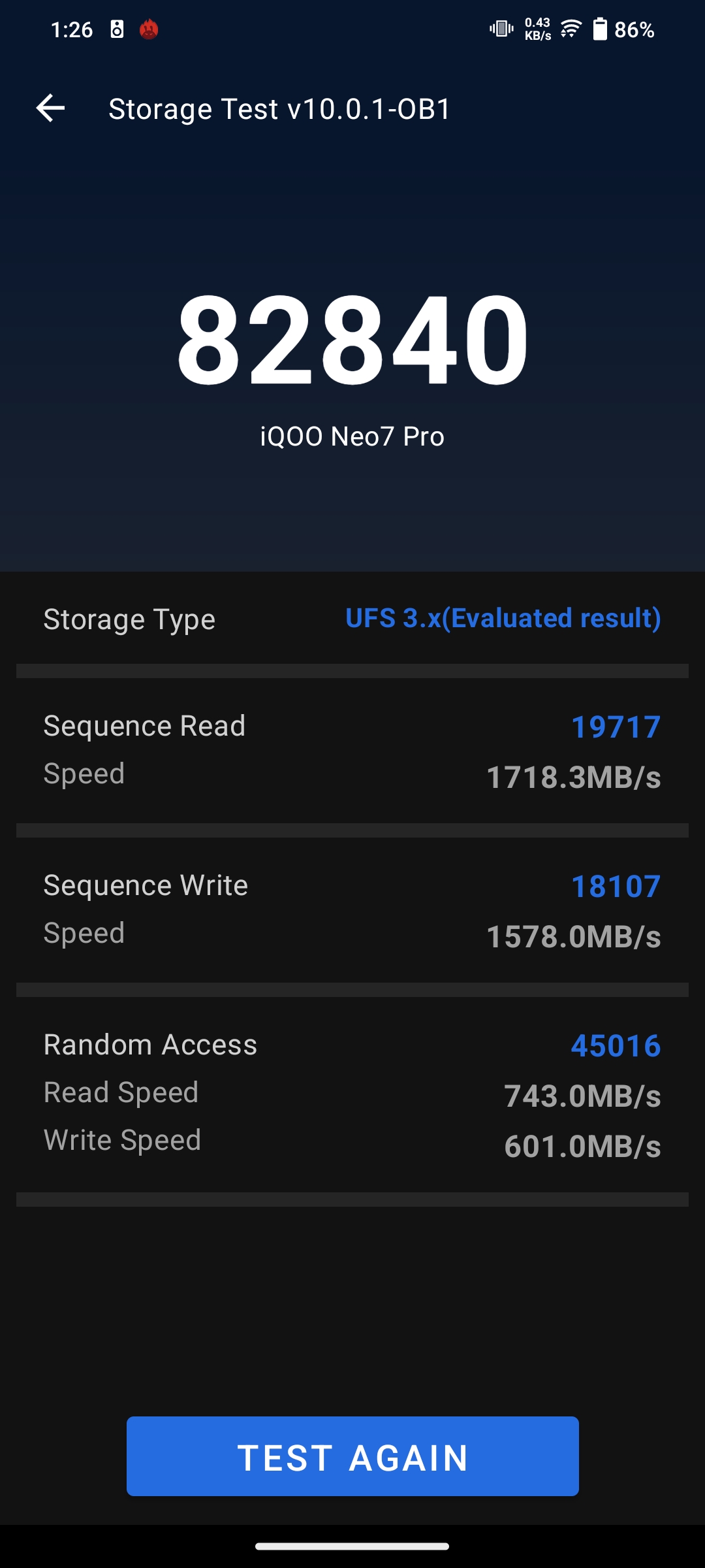 I guess many of you already using this monster & many of you already ordered it & waiting for the delivery. Here, in this thread, we'll go through the Storage Read & Write test done in this Monster Neo7Pro and how it performed. As we all know iQOONeo7Pro is having UFS 3.1 Storage which is crazy fast in opening, loading & other aspects of the application, So to measure this speed, Antutu Benchmark is having the option to test the device read & write speeds, which provides accurate results. Here higher the storage score better/more efficient the storage of the device.