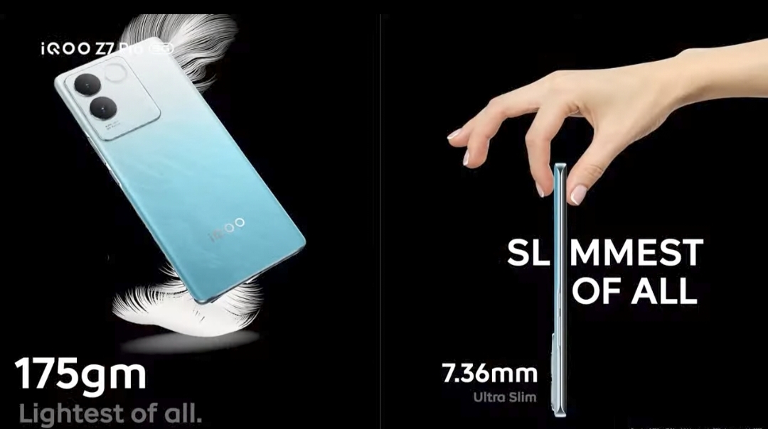 At just 7.36 mm, the iQOO Z7 Pro redefines slimness in the segment and weighs just 175gms. Making it sleek and lightweight at the same time. Its fully loaded design with AG glass at the back makes it Anti-glare and Anti fingerprint.