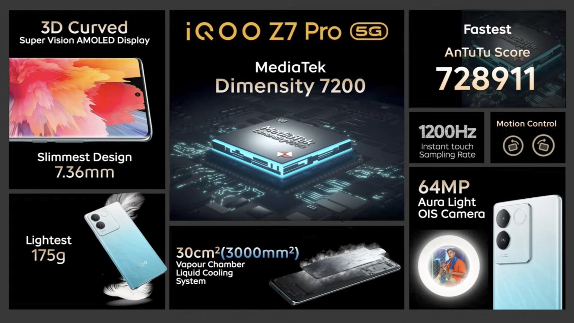 Here's detailed specifications for iQOO Z7 Pro 5G which was just unveiled today at 12:00 PM by iQOO's own questers, sending waves of excitement throughout the tech world. This powerhouse of a device promises to redefine mobile performance, gaming, and user experience.