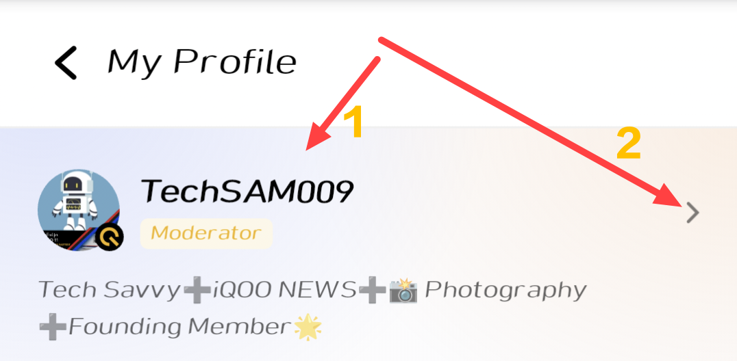 If you haven't changed your user id to user name, then ' 1 ' (as shown below) will be ur iQOO Community UID . But if you have already changed your UID to user name (as i did 😊) then click on the '2' arrrow👇.