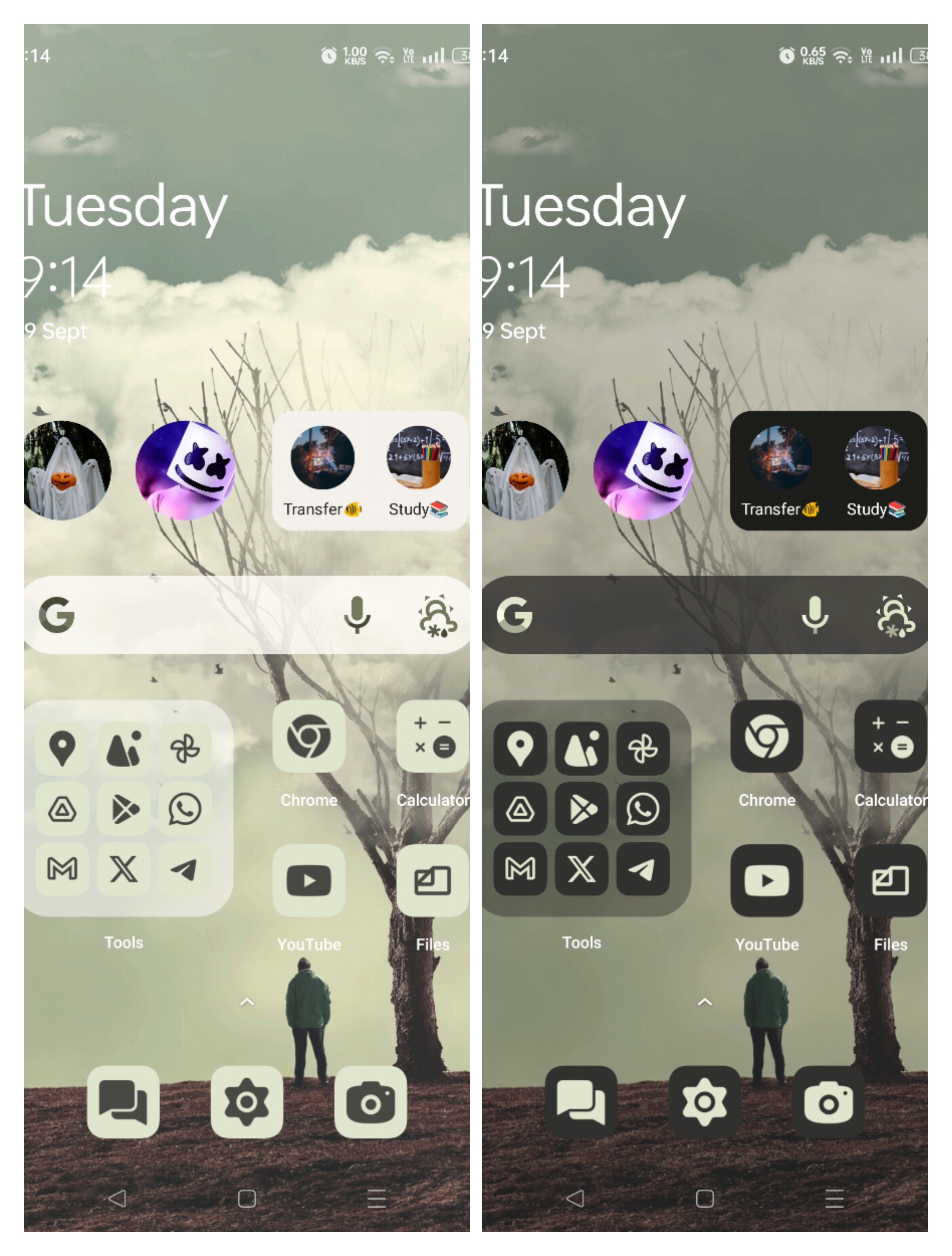 We don't want to fill the beautiful home screen with bunch of icons so Enlarged Folder features make this easy to concentrate atleast 9 apps in a small squircle shape to access them easily