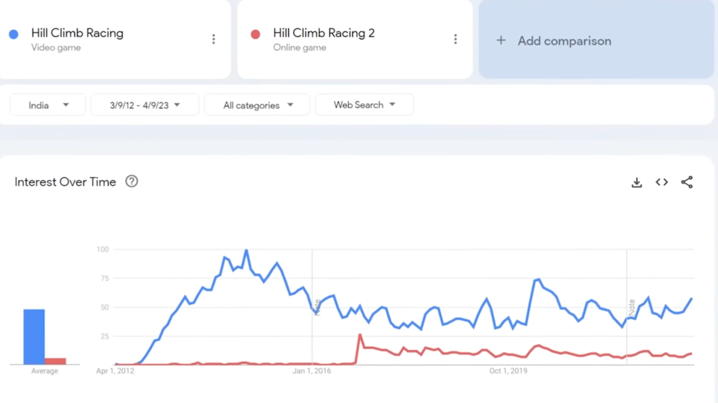 Hey, but if you take tge popularity decline graph of Hill Climb Racing it is not as significant as Fruit Ninja 🍉.