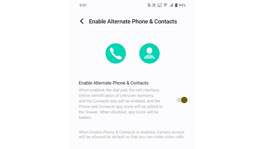 Tap on Apps and scroll to the bottom. Now click on ‘Enable Alternate Phone & contacts’.