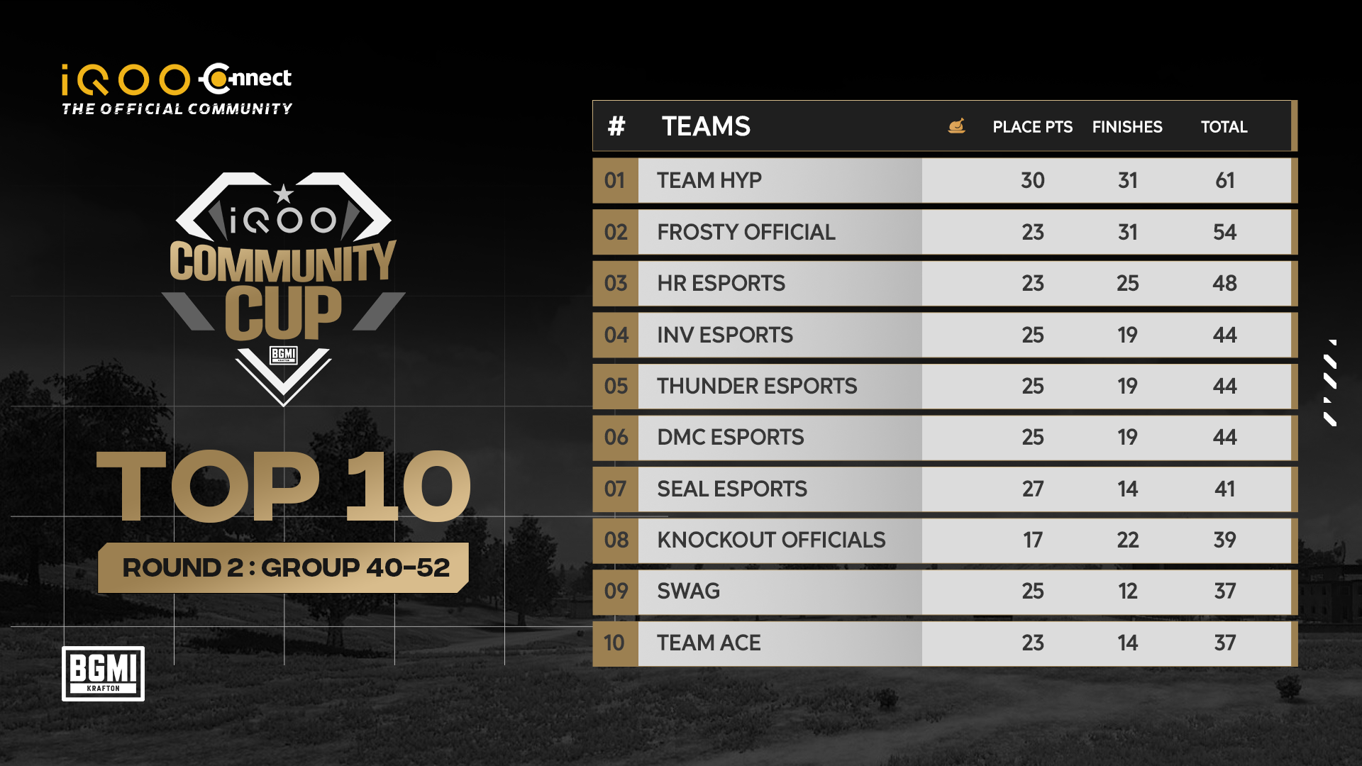 And now is the time for Round 2 updates for Groups 40–52! Scroll through to see the Top 10 teams who made it through: