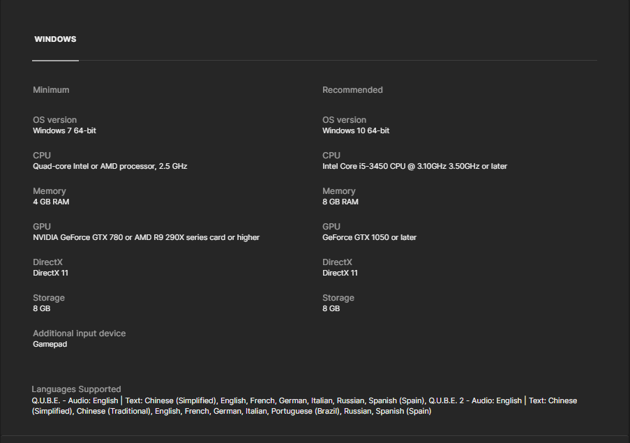 Q.U.B.E Ultimate Bundle packs the critically acclaimed title into one package with every available DLC. Furthermore, this package contains brand-new content and redone visuals, making it an overall great choice for a decade-old title.