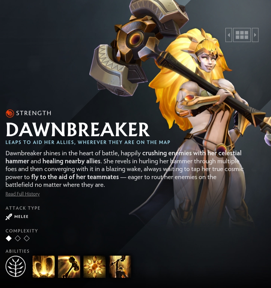 1.Starbreaker: Dawnbreaker swings her weapon to release a series of blows, damaging and stunning enemies in a cone.