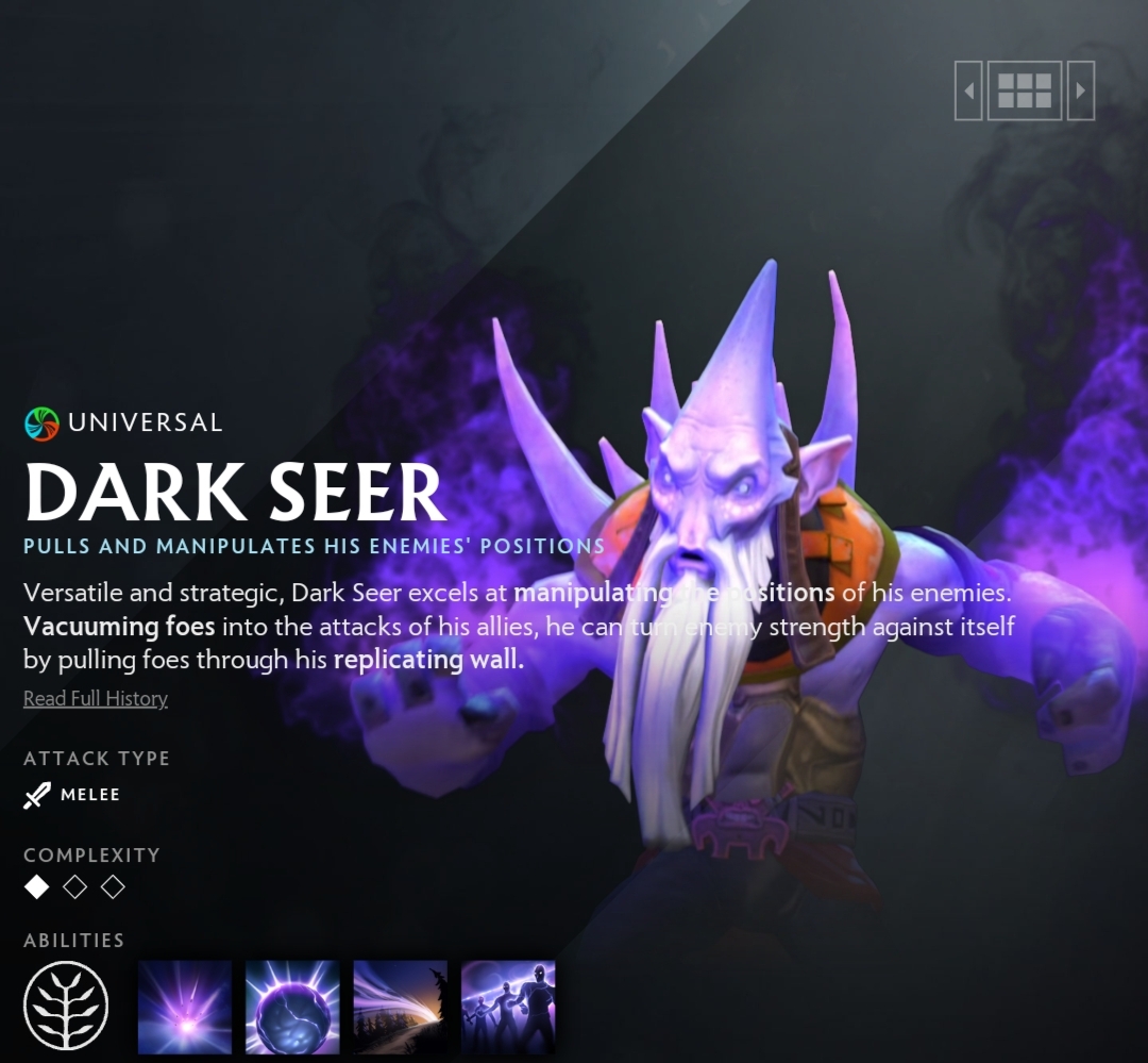 Dark Seer relies on positioning and crowd control to set up kills for his team. He is often seen in combos with heroes who can capitalize on his Vacuum ability, as it can group enemies together for devastating area-of-effect spells.