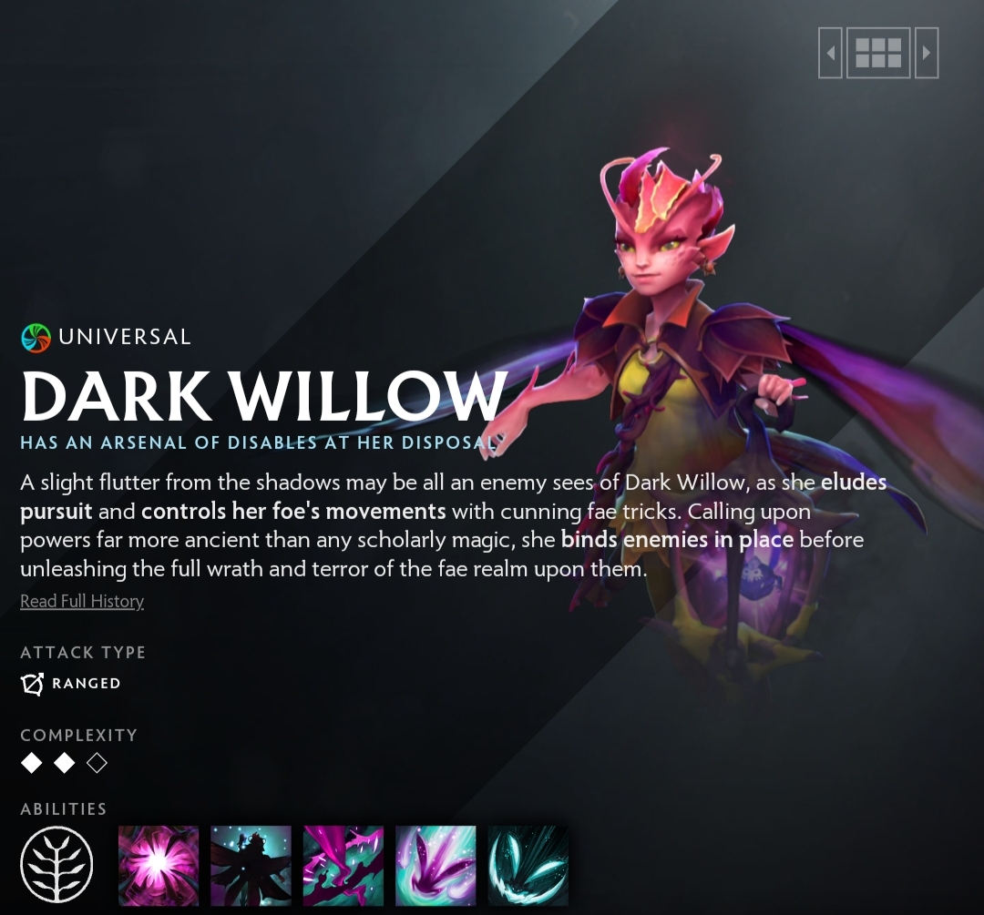 Dark Willow is a versatile support hero who excels at crowd control and disrupting teamfights. Her abilities can set up kills for her team and make it difficult for enemies to engage.