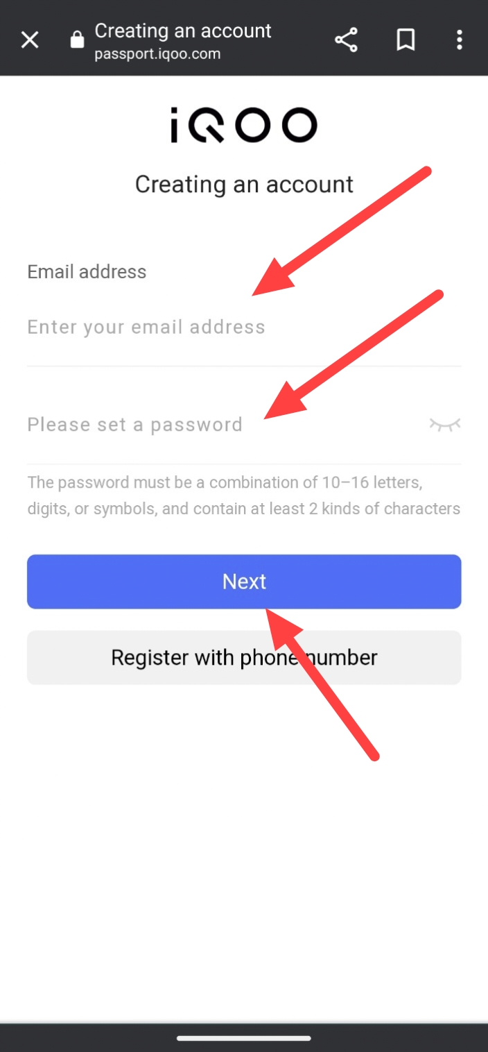 Next step is to create an iQOO Community Account using your mobile number/Email address with passward.
