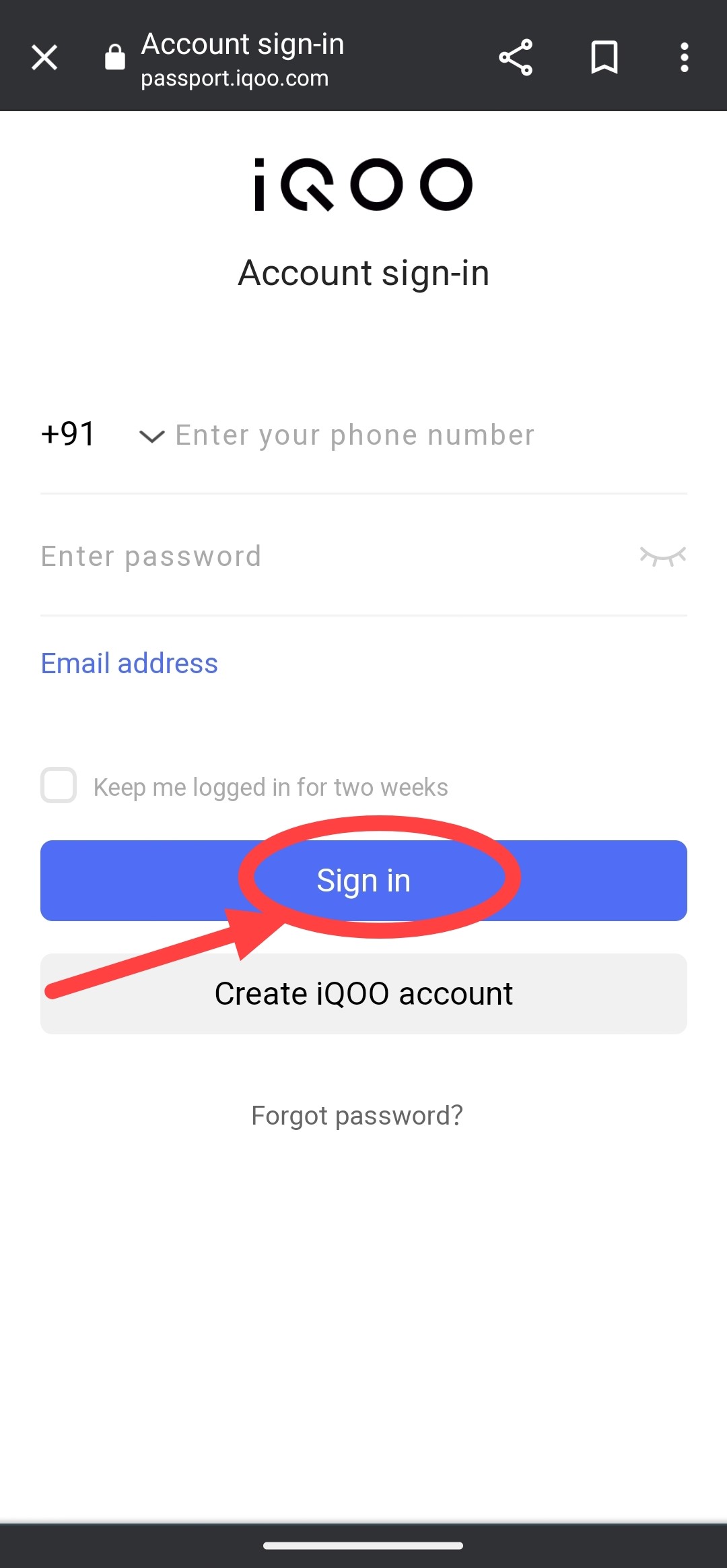 If you are not a member of iQOO Connect/New User then instead of Sign In you can choose for Create Account and Sign Up to the iQOO Connect Portal.