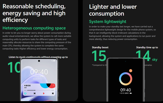 Efficient System: The system undergoes lightweight reconstruction, reducing background processes by 20%. This cuts power consumption, extending standby time by 15%, with up to 14 days of standby use.