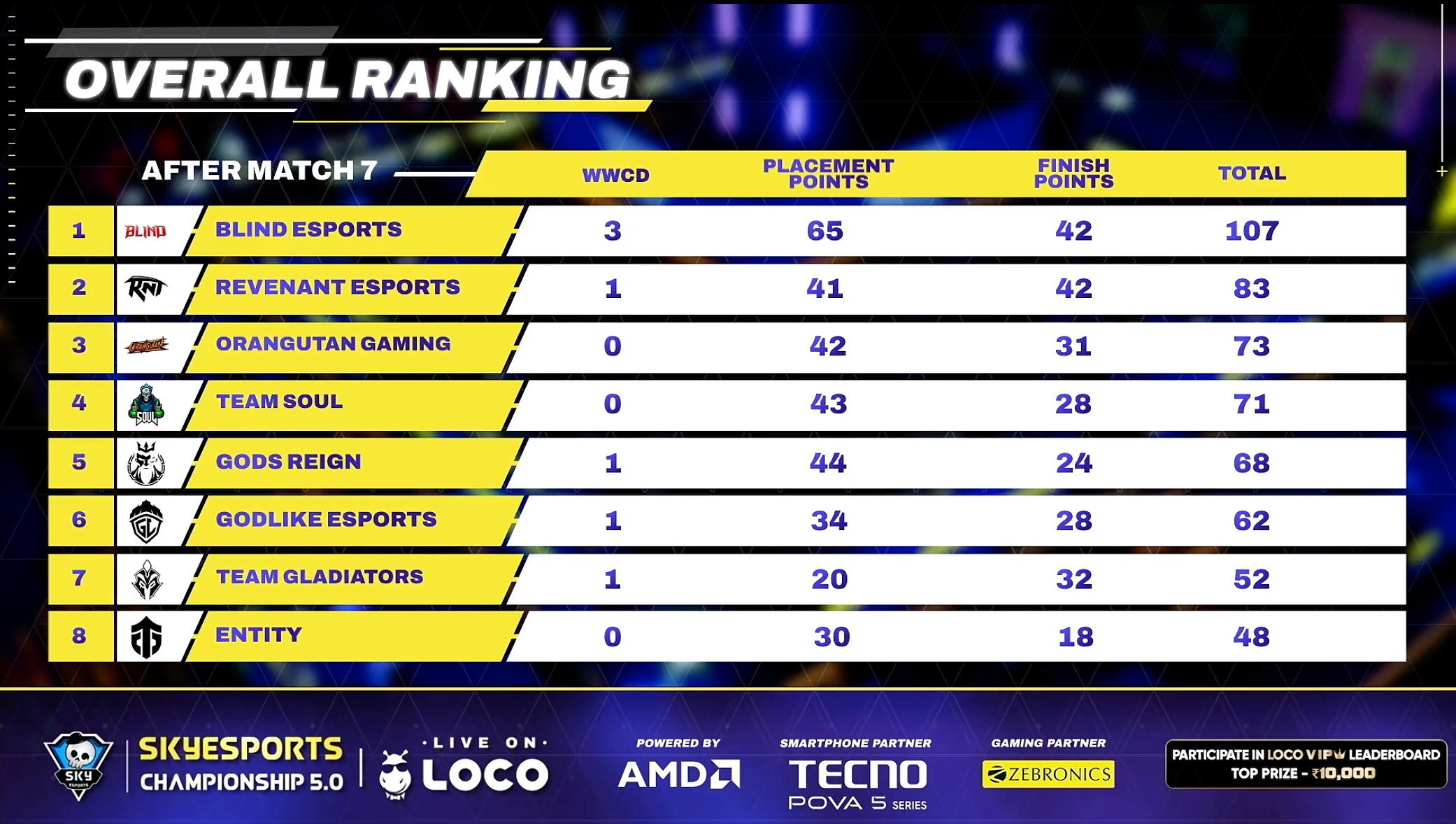 In Match 4, which was the game of Vikendi Team Blind took away the WWCD from Orangutan going towards the Top of the table.