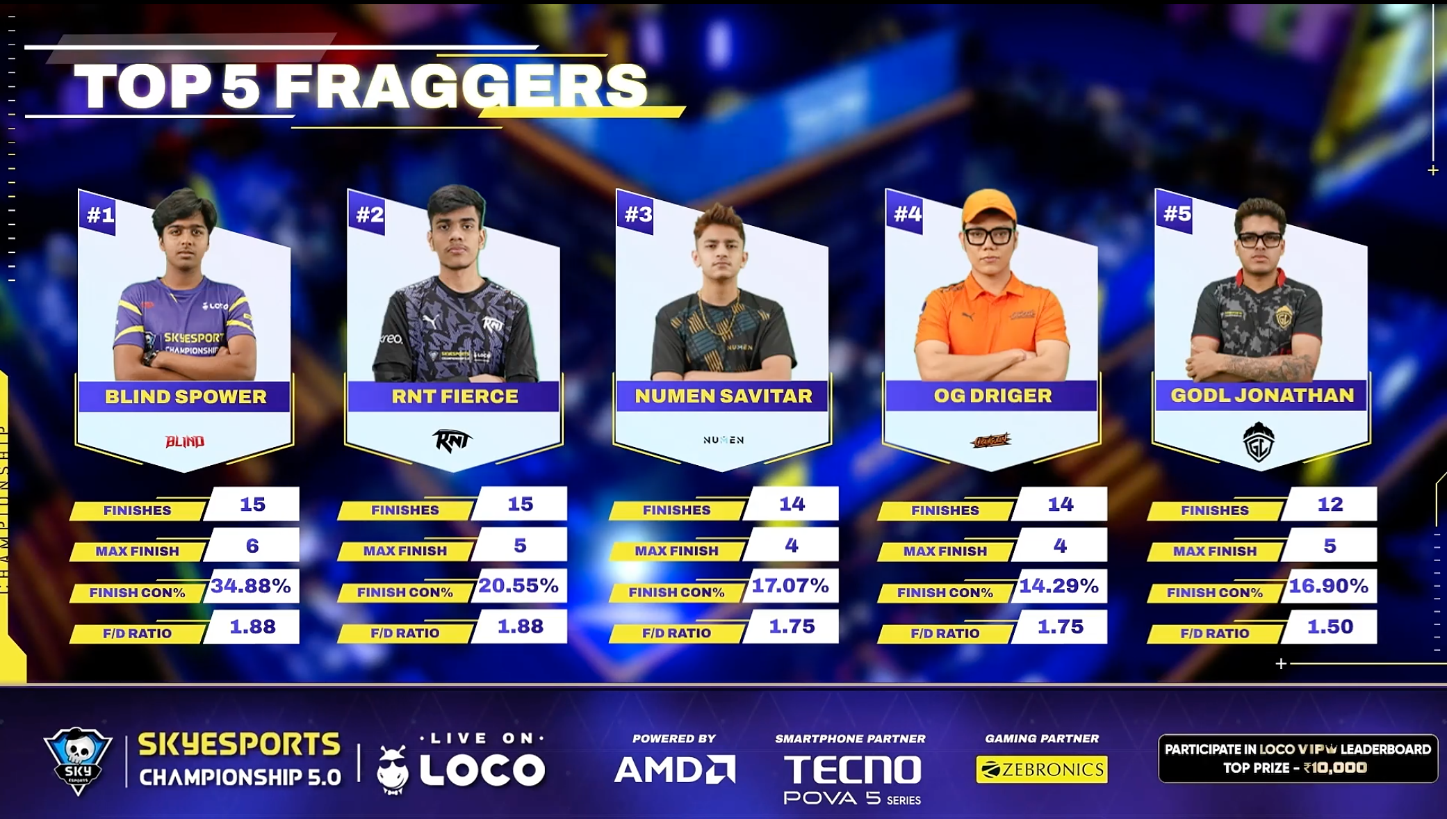Before the start of the match, Casters came on to the stage and were giving awayLoco VIP Tshirts to the audience who so ever shout the name loudest. Phew! It was fun. Now, looking at the points table Team Blind have maintained their first position with 40Pts lead but the real chaos was happening between 2nd and 8th Positions. And, same MVP list as before Spower and Fierce equalising.