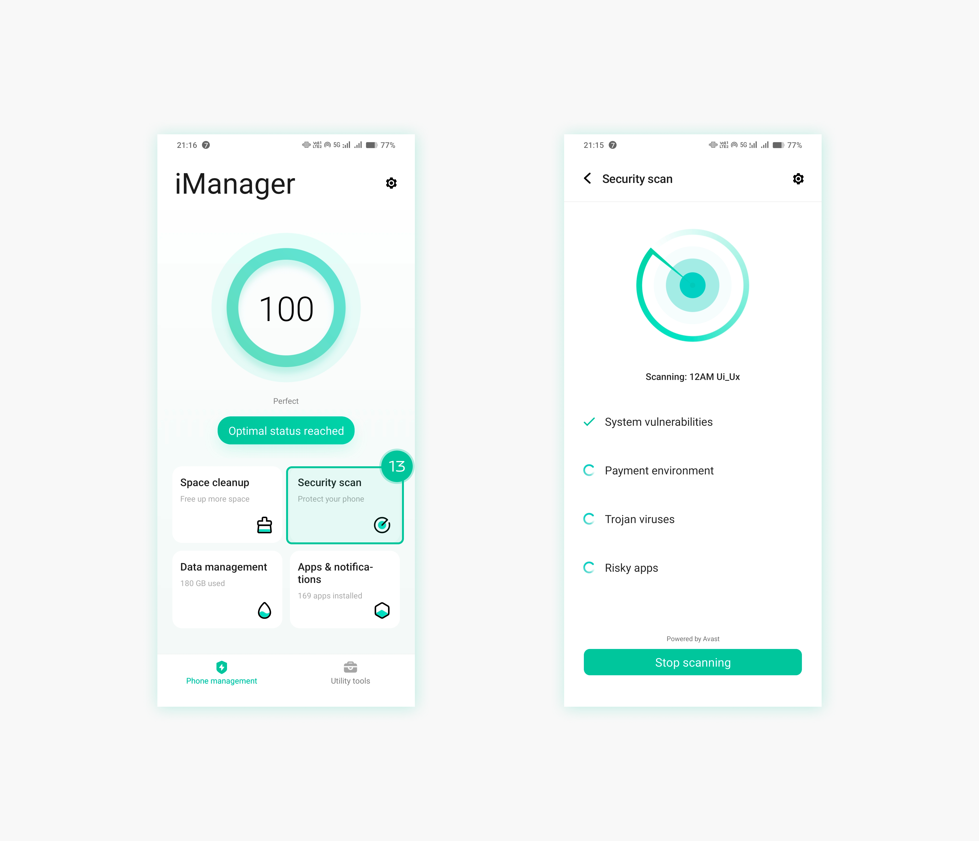 13. Security scan: Avast antivirus powers our security scan feature. It checks for system vulnerabilities, Trojan viruses, and risky apps, and ensures a secure payment environment with minimal impact on usability.