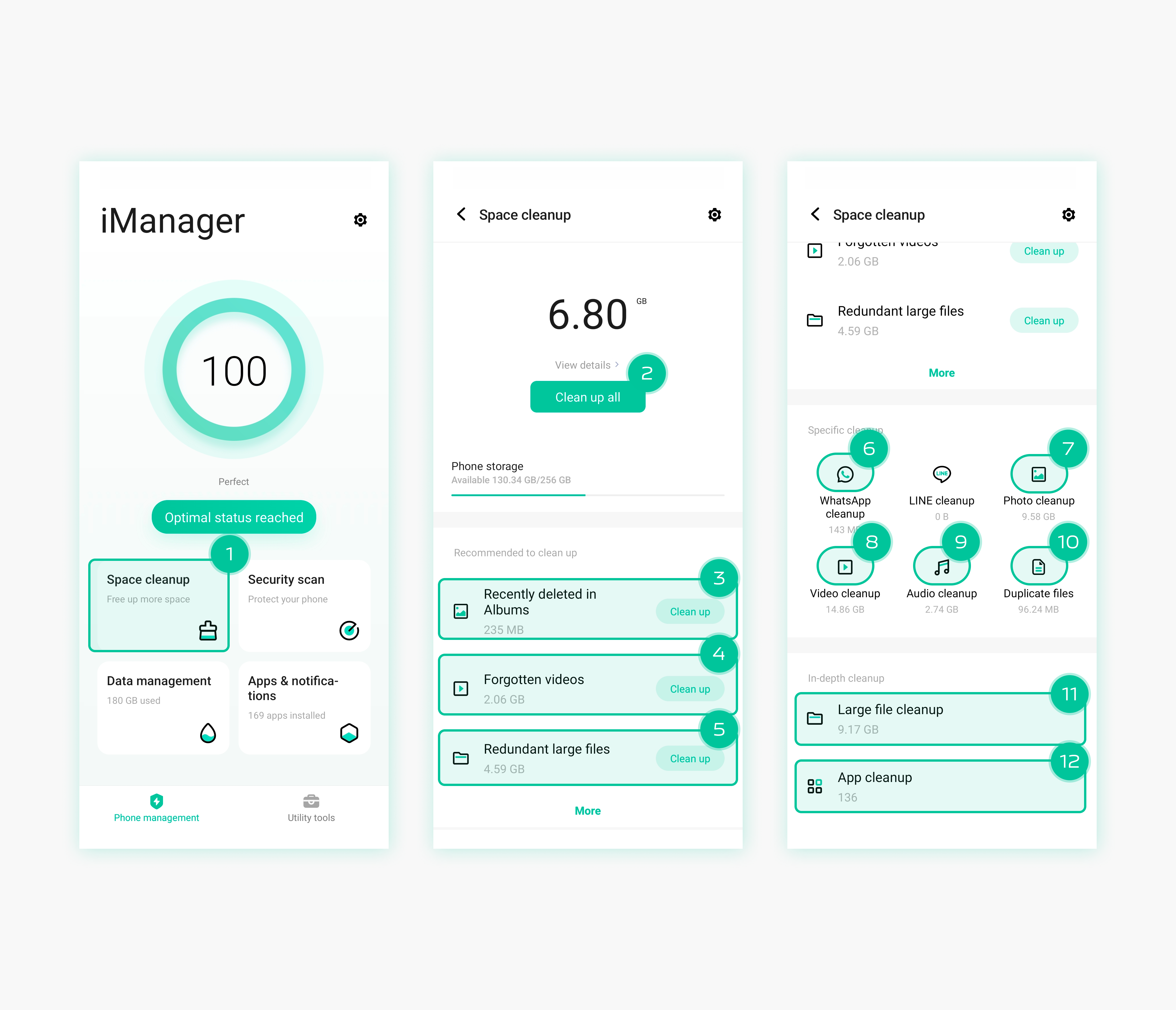 1. Space cleanup: When you use your phone, it generates large fragmented files in your storage. Often, you forget to delete unwanted and unused files such as apps, images, videos, audios, and duplicates. These files take up a lot of space on your device, and the more you keep them, the slower your system becomes. This is where the space cleanup feature comes in handy. By cleaning up these files, you can free up space and improve the performance of your device.