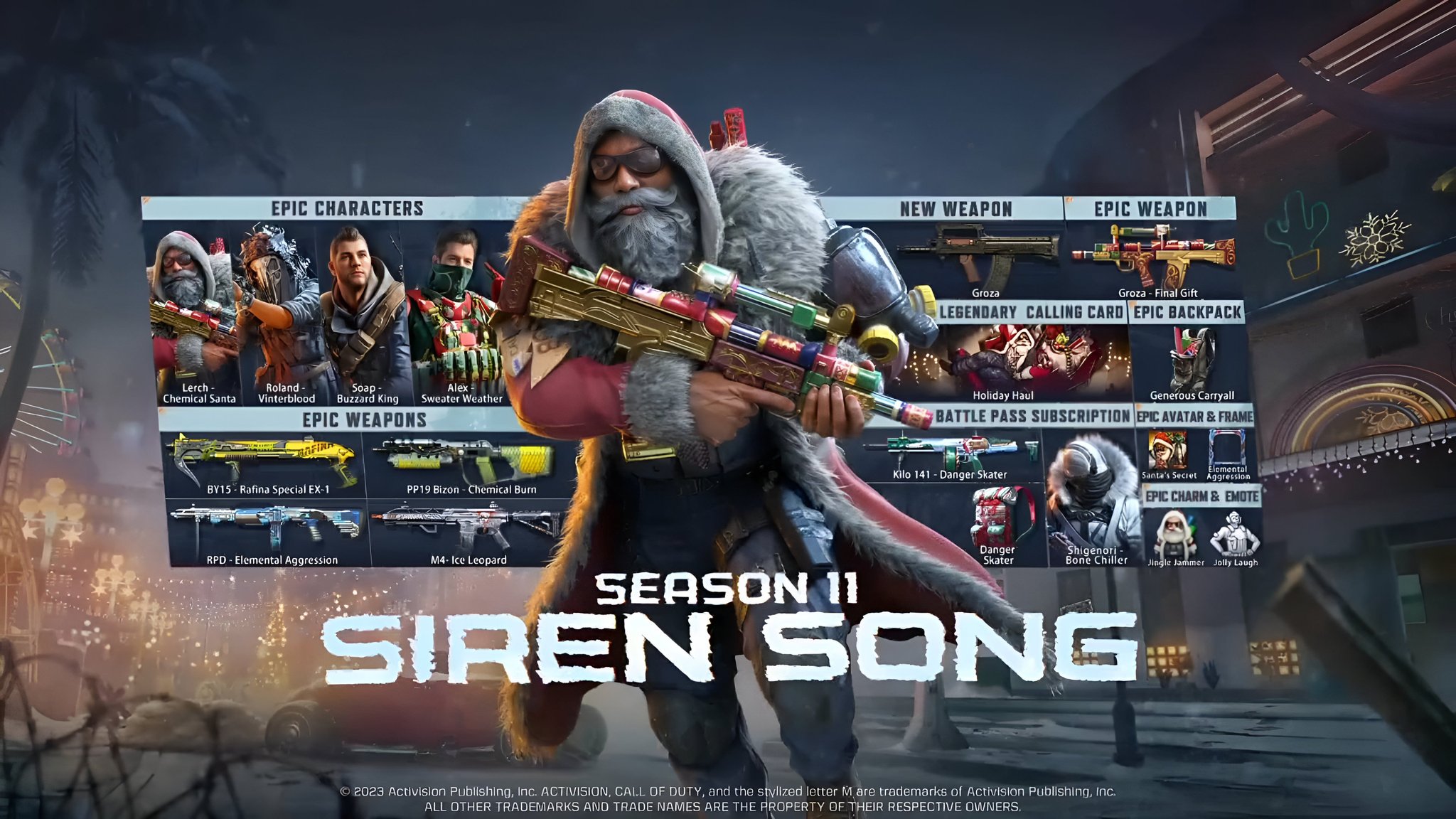 Purchase the Premium Pass for the chance to earn all the content available in the Siren Song Anniversary stream, including winter- and holiday-themed Operator Skins like Alex — Sweater Weather, Soap — Buzzard King, Lerch — Chemical Santa, and Roland — Vinterblood.
