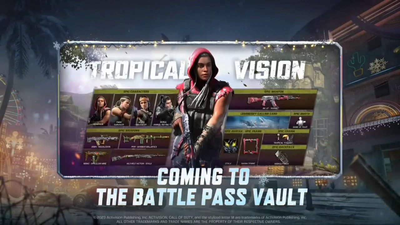 • Battle Pass Vault: The Vault will be updated for Season 11, featuring Battle Pass content from Season 5 — Tropical Vision (2022). Earn Epic Operator Skins andWeapon Blueprints that you missed during that season, including Rampage, Park — Survivor, Rosa — Animal Instincts, and Rivas — Smuggler, plus the AK-47 — Mania, Oden — Megalodon, PKM — Bamboo Ballistics, and Kilo Bolt-Action — Stalk.