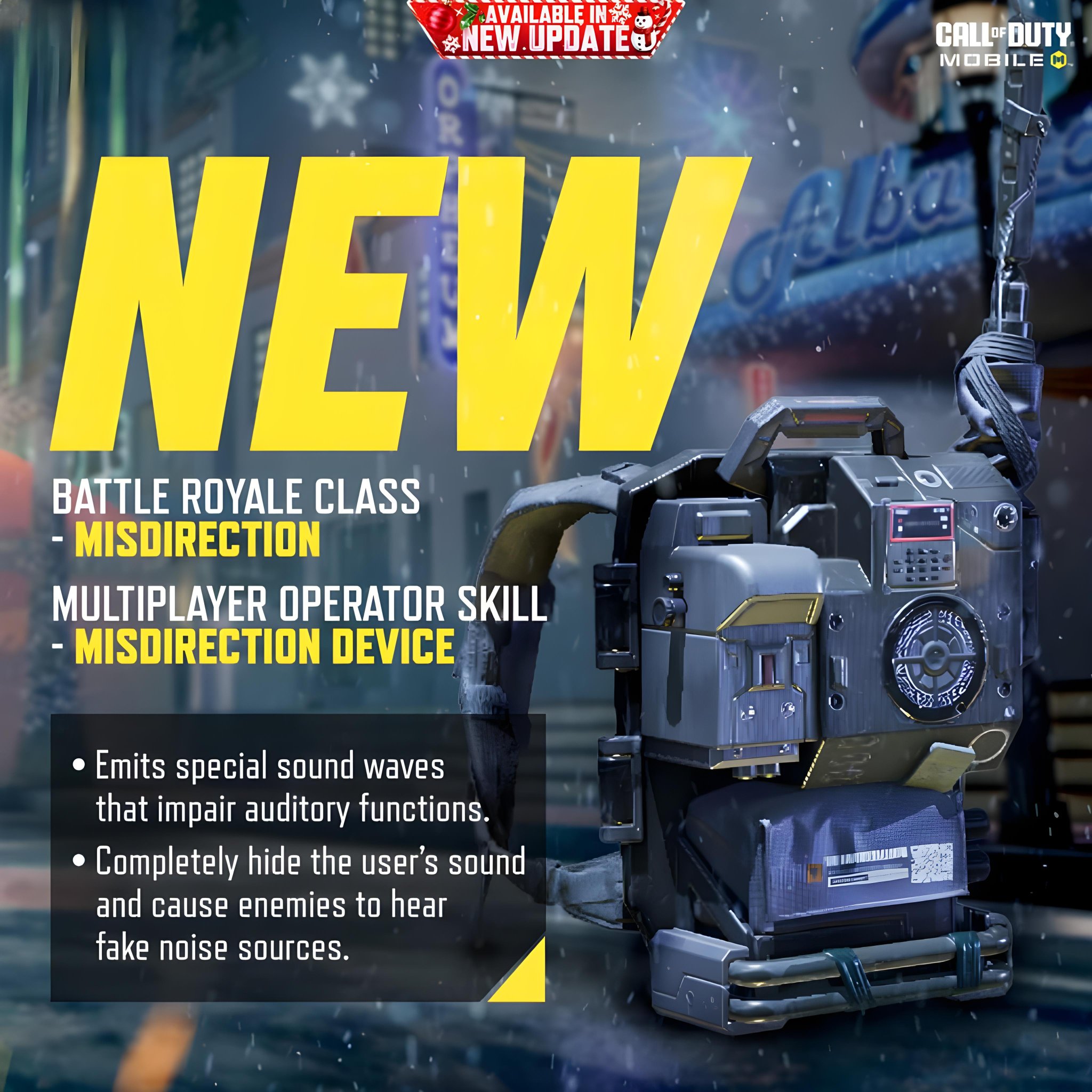 Disorient your enemies with the new Misdirection Battle Royale class. This class comes equipped with a sonic generator that confuses enemies by emitting special sound waves that impair auditory functions, completely hiding the user’s sounds and causing enemies in range to hear fake noise sources. The Misdirection Battle Royale class also benefits from a passive increase to movement speed.
