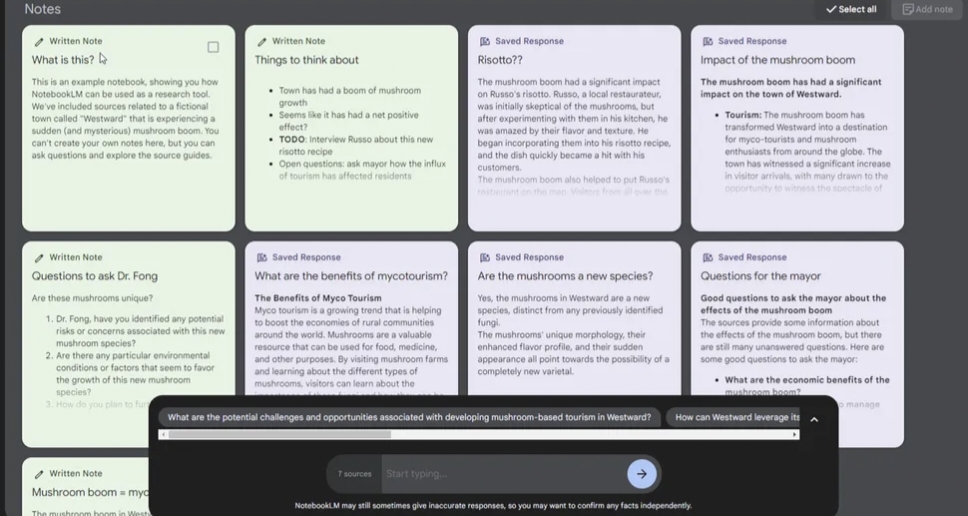 The company highlights five specific features in its announcement with the first one being a “new noteboard space”. In this area, you’ll be able to take quotes from the AI chat or excerpts from your notes and pin them at the top for easier viewing. Next, citations in a response will take you directly to the source, “letting you see [a] quote in its original context.”