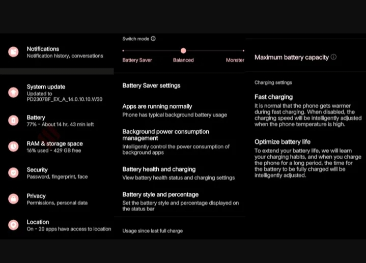 You can also extract a bit more performance on your iQOO smartphone by setting it to the Monster mode, however, it will consume more power, hence the battery life could be affected. Monster mode can be enabled from either the quick settings menu or from the battery settings menu.