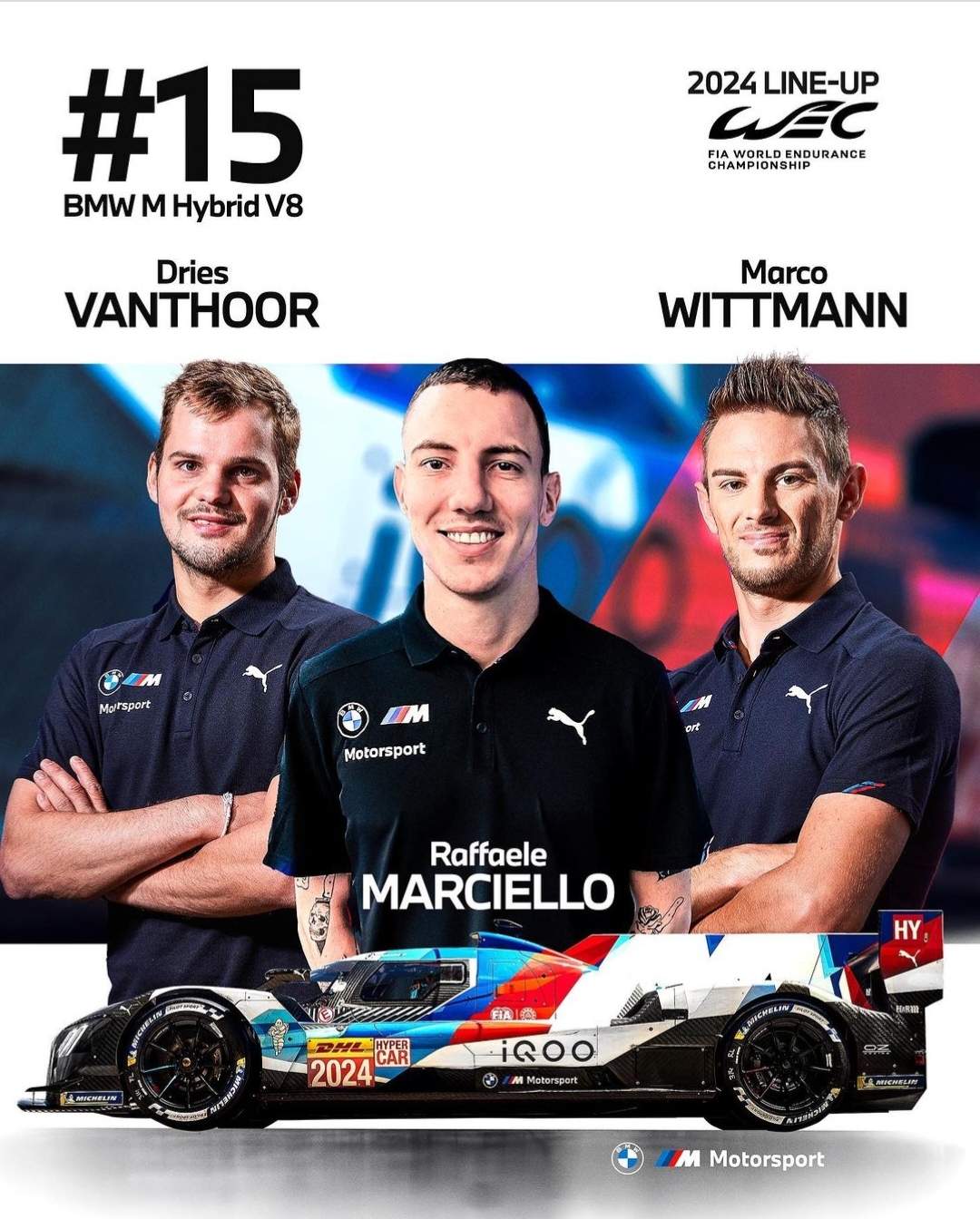 In the #15 BMW M Hybrid V8, Vanthoor will partner with Wittmann and newcomer to BMW M Motorsport, Marciello.