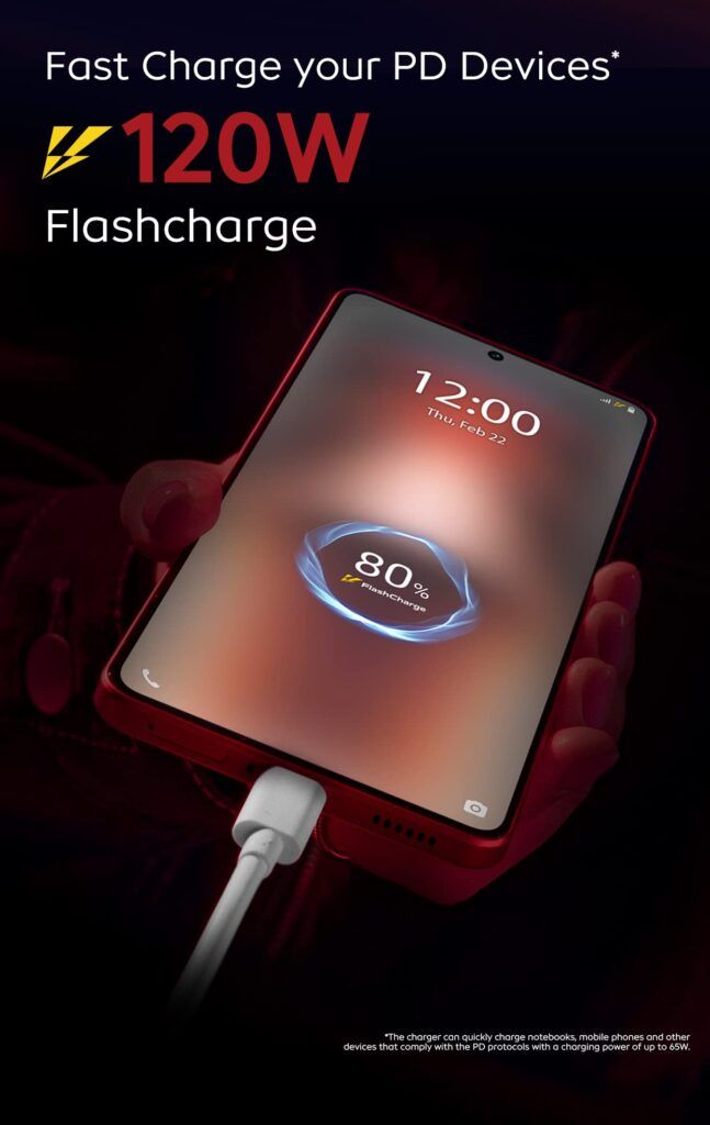 - The phone will have support for 120W charging and the adapter should be bundled in the box. The company says the PD charger can quickly charge your notebooks, mobile phones, and other devices.