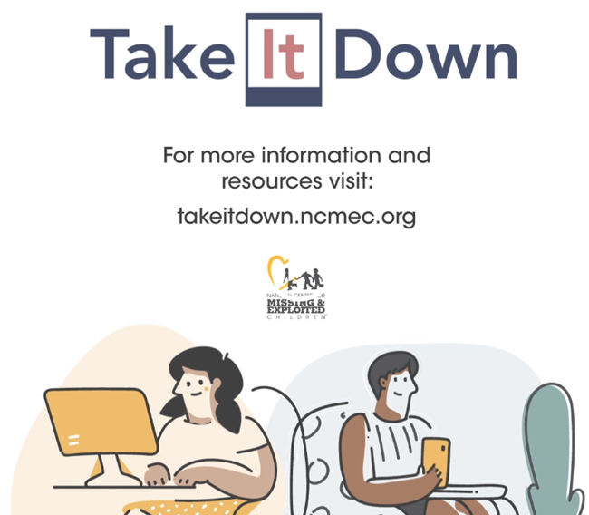 --> Take It Down, a joint initiative of NCMEC and Meta, helps teenagers regain control of their private images and stop them from being shared online.
