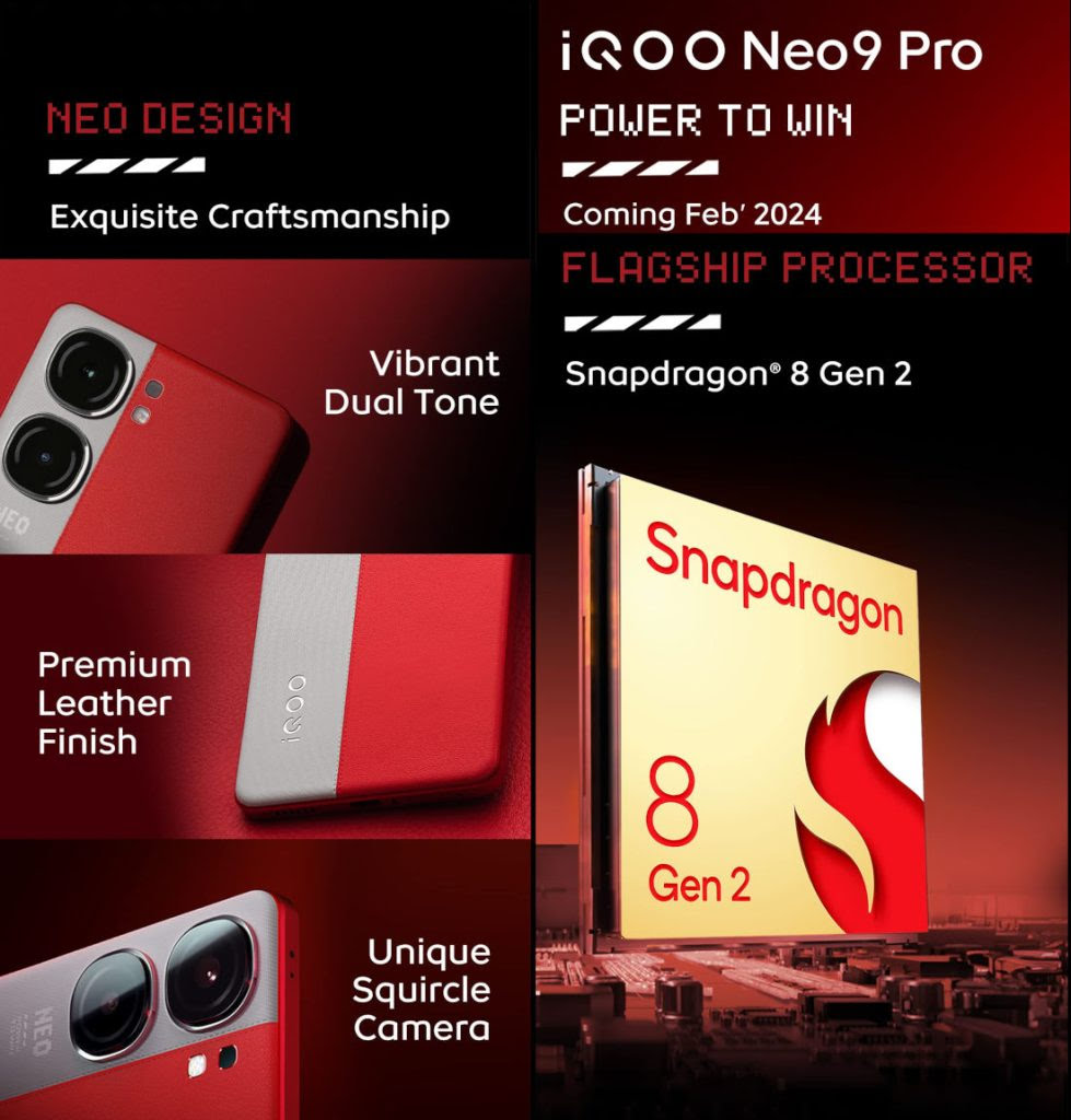 📅 Release Date: February 22, 2024🔥 Get ready to experience the ultimate in performance and speed with the iQOO Neo 9 Pro! Powered by the cutting-edge Snapdragon 8 Gen 2 processor coupled with the revolutionary Q1 chip, this smartphone is engineered to redefine your mobile experience.🚀 Performance Redefined: With the Snapdragon 8 Gen 2, enjoy lightning-fast app launches, seamless multitasking, and smooth gaming like never before. The Q1 chip takes it a step further, optimizing power efficiency and enhancing overall performance.📸 Capture Every Moment: Elevate your photography game with the iQOO Neo 9 Pro's advanced camera system. From stunning landscapes to detailed close-ups, capture every moment with clarity and precision.📱 Sleek Design, Immersive Display: Dive into a world of immersive visuals with the iQOO Neo 9 Pro's stunning display. Whether you're streaming your favorite content or gaming on the go, experience every detail in vibrant clarity.⚡️ Ultra-Fast Charging: Say goodbye to long charging times! The iQOO Neo 9 Pro features ultra-fast charging technology, ensuring you spend less time plugged in and more time enjoying your device.