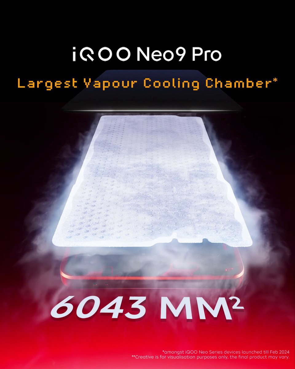 The Neo 9 Pro introduces the cutting-edge 6K VC Cooling System, featuring the segment's largest vapor cooling chamber at 6043mm², ensuring optimal performance even during intense gaming sessions.