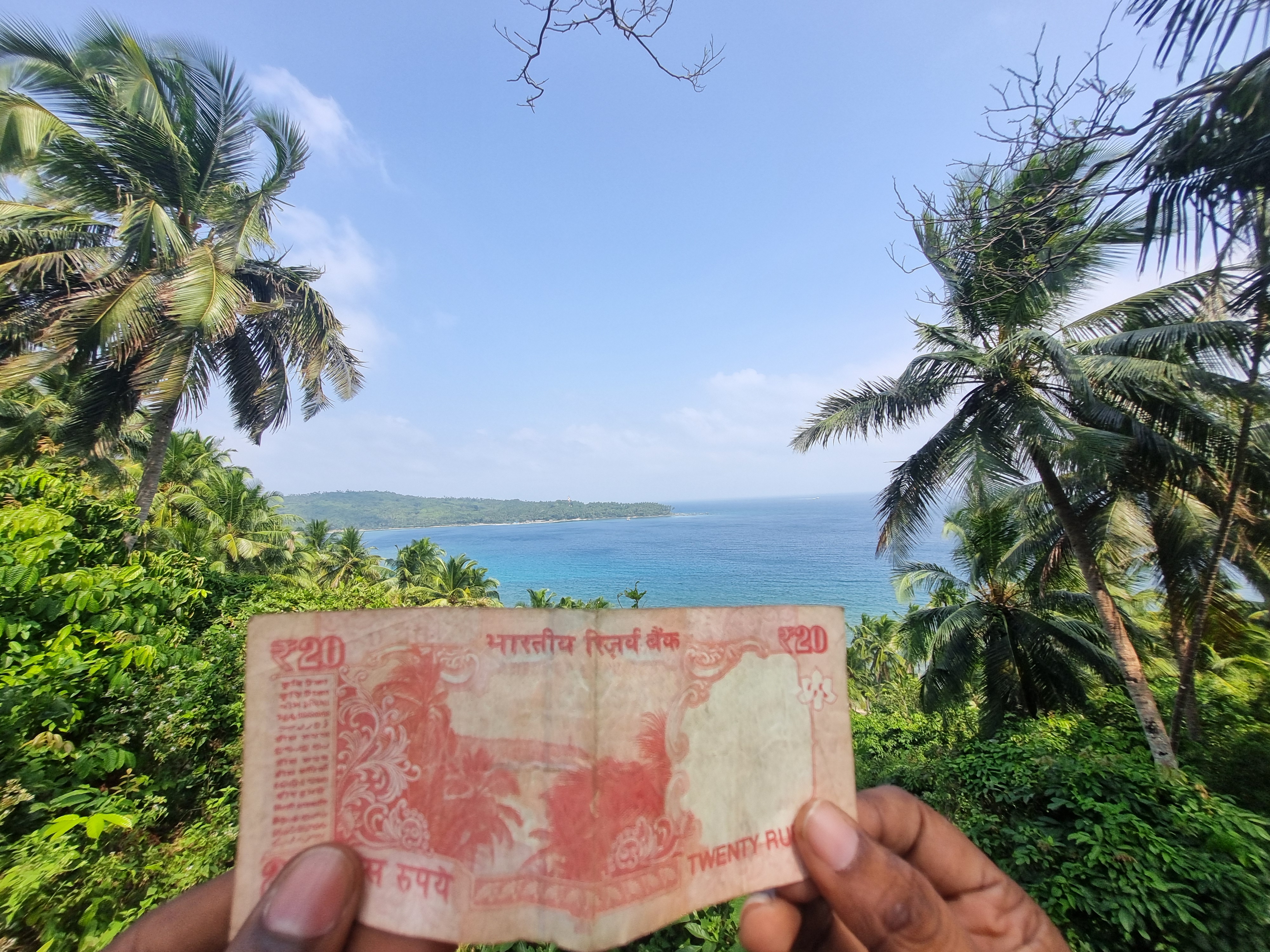 The image of a picturesque bay lined with lush greenerycaptured on the red-coloured note is the North BayIsland and the same view can be see on the way to Mount Harriet- the second highest peak in the Andaman and Nicobar archipelago