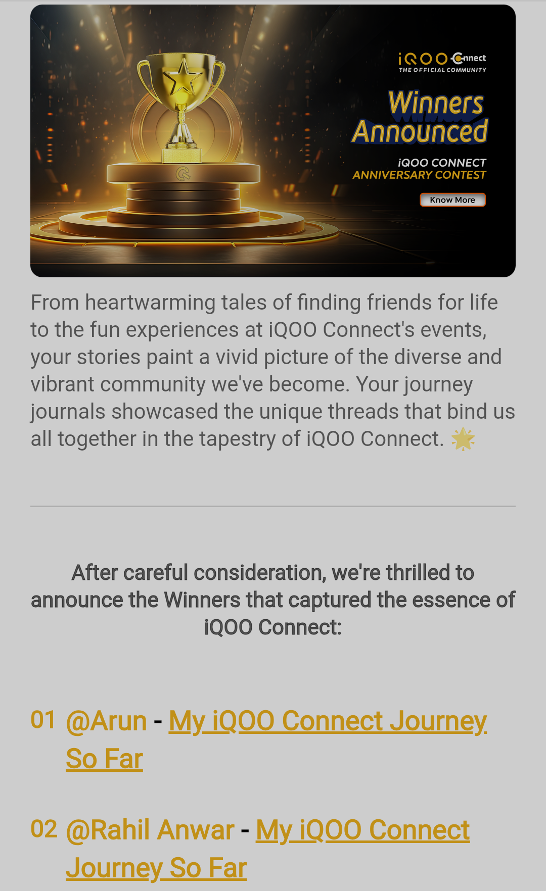 1. Winner of iQOO Connect's 1st Anniversary Contest: