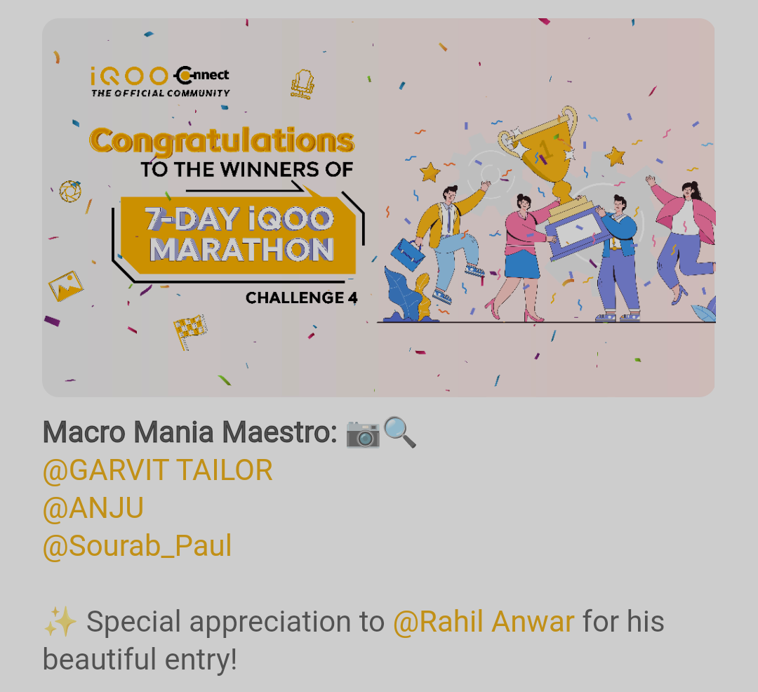 One particular highlight of my journey with iQOO Connect was the 1st Anniversary celebration, where I had the honor of being recognized for my contributions to the community. From winning contests to being featured in curated lists of top threads, each accolade served as a reminder of the vibrant tapestry of talent and creativity that defines the iQOO Connect.