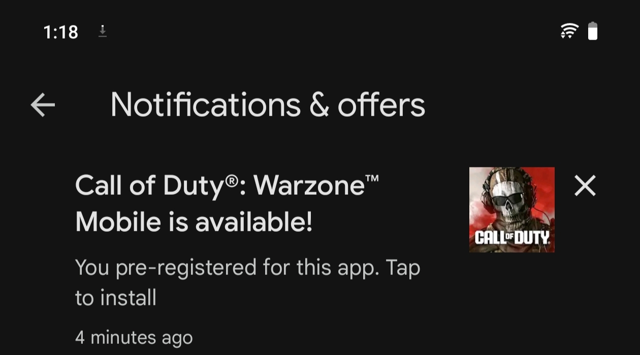 But i got the information of warzone mobile rolling out for installations in india playstore was by the information from @MKJEDI , Thanks bro for sharing. Then i got notification from the playstore "warzone mobile is ready for install".,
