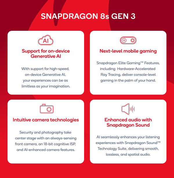 The “s” stands for special — because these features have been specially selected for Snapdragon 8s Gen 3 to give users a personalized, premium experience.