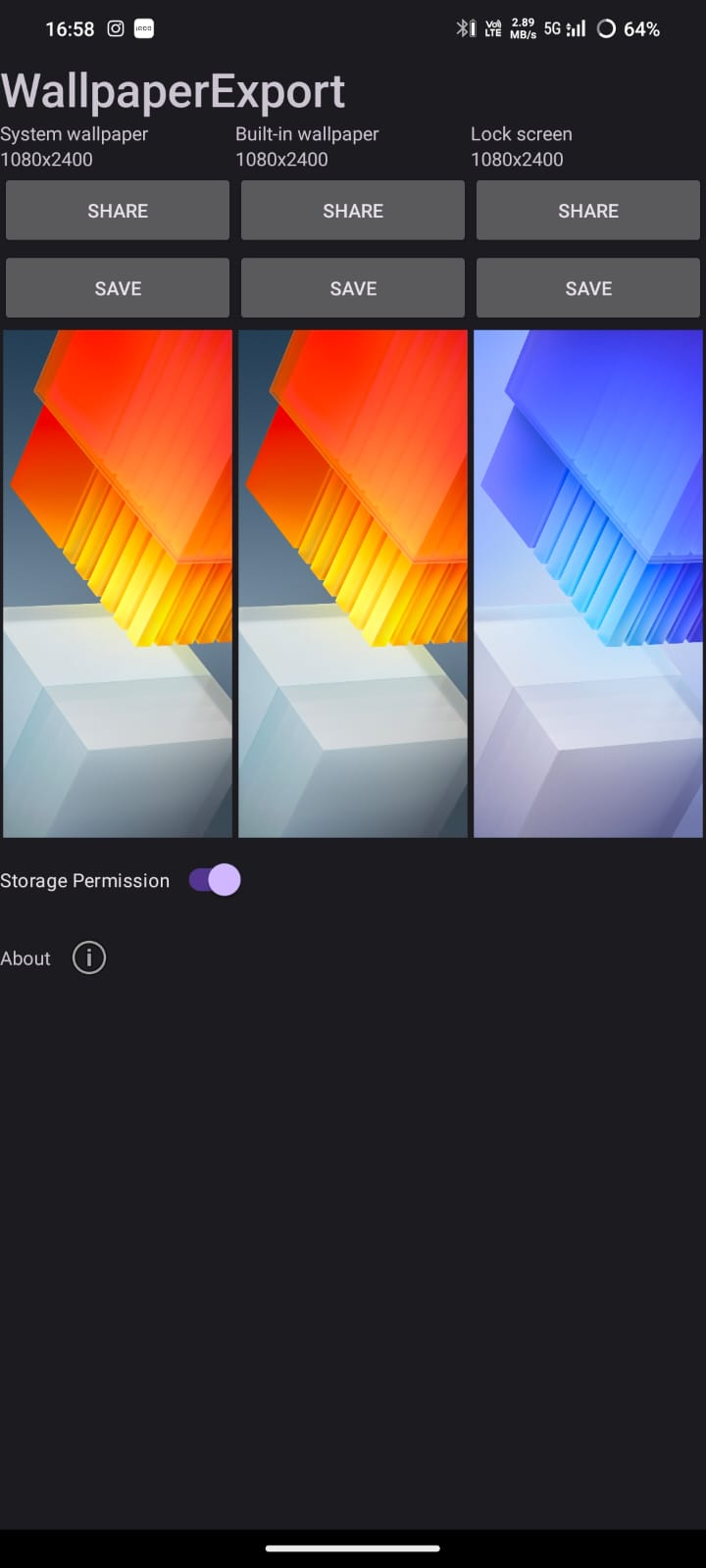It's important to note that WallpaperExport requires different permissions depending on your Android version.
