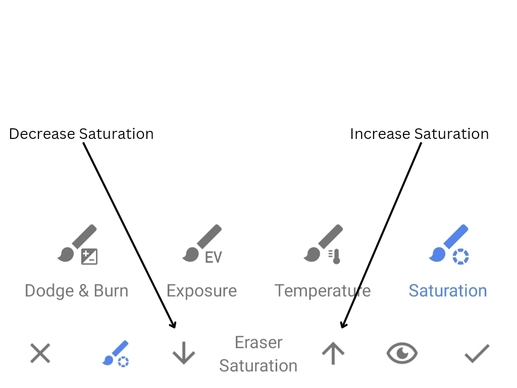 To change the saturation of certain parts in your image, use the brush tool. This might help you achieve a more muted or colorful effect in your image, or it can help certain colors stand out more.