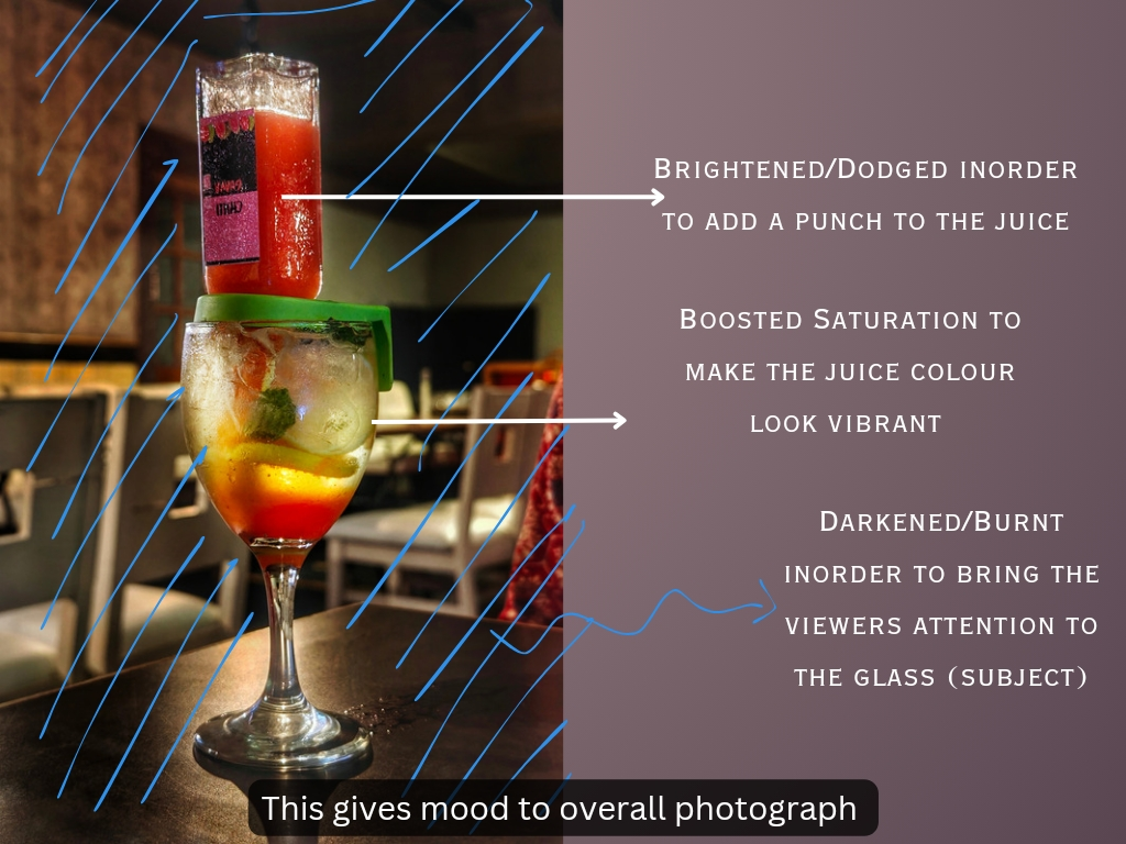 To make a subject stand out more, darken the surrounding area: By darkening the background behind a subject, you can make them stand out more by using the dodge and burn brush.