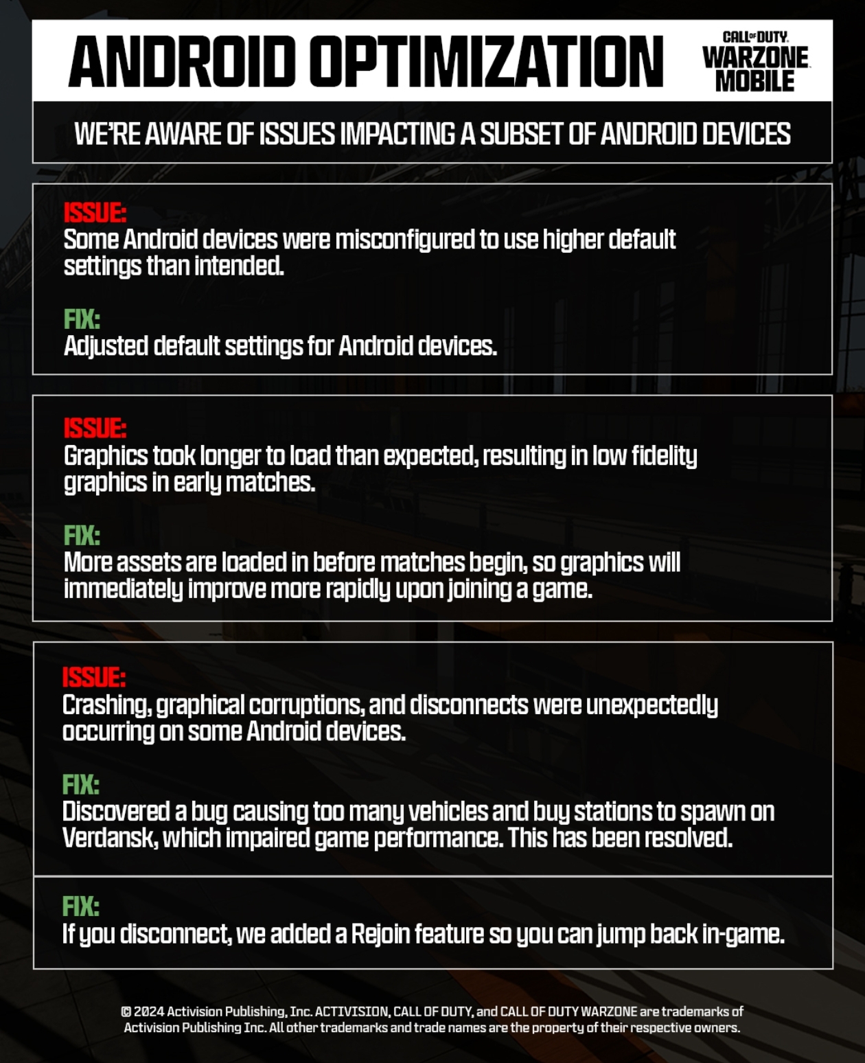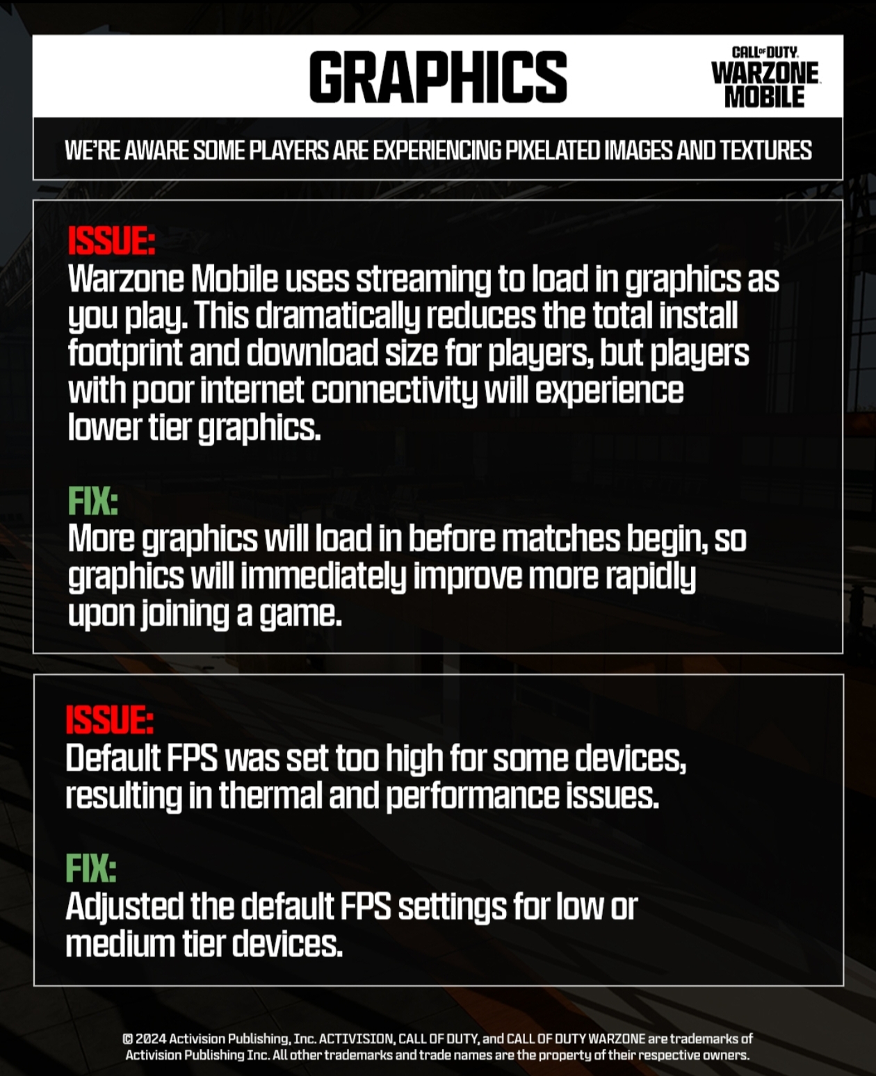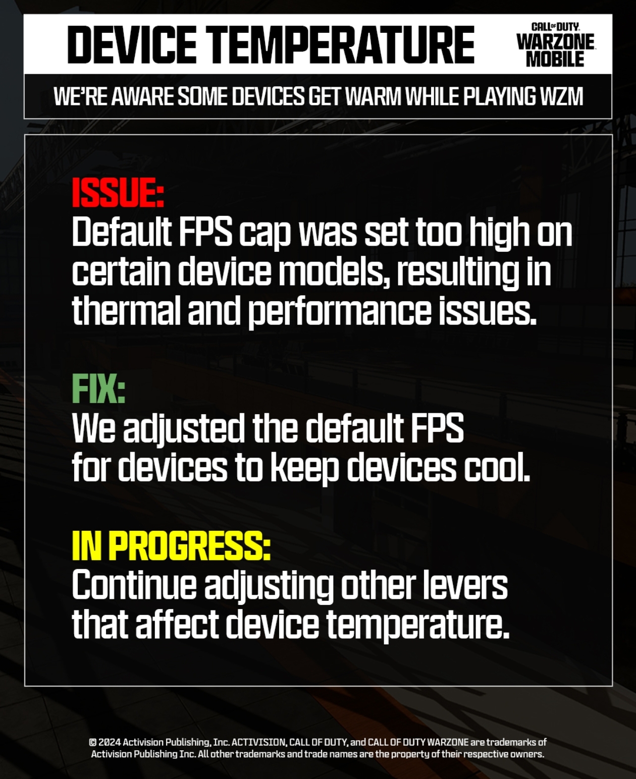 Today’s Warzone Mobile update specifically targets optimization on Android devices, which was a major pain point players suffered following the game’s high-profile launch last month. The team is also addressing concerns about device temperature, automatically dropping default FPS values, and letting players manually increase the setting instead.