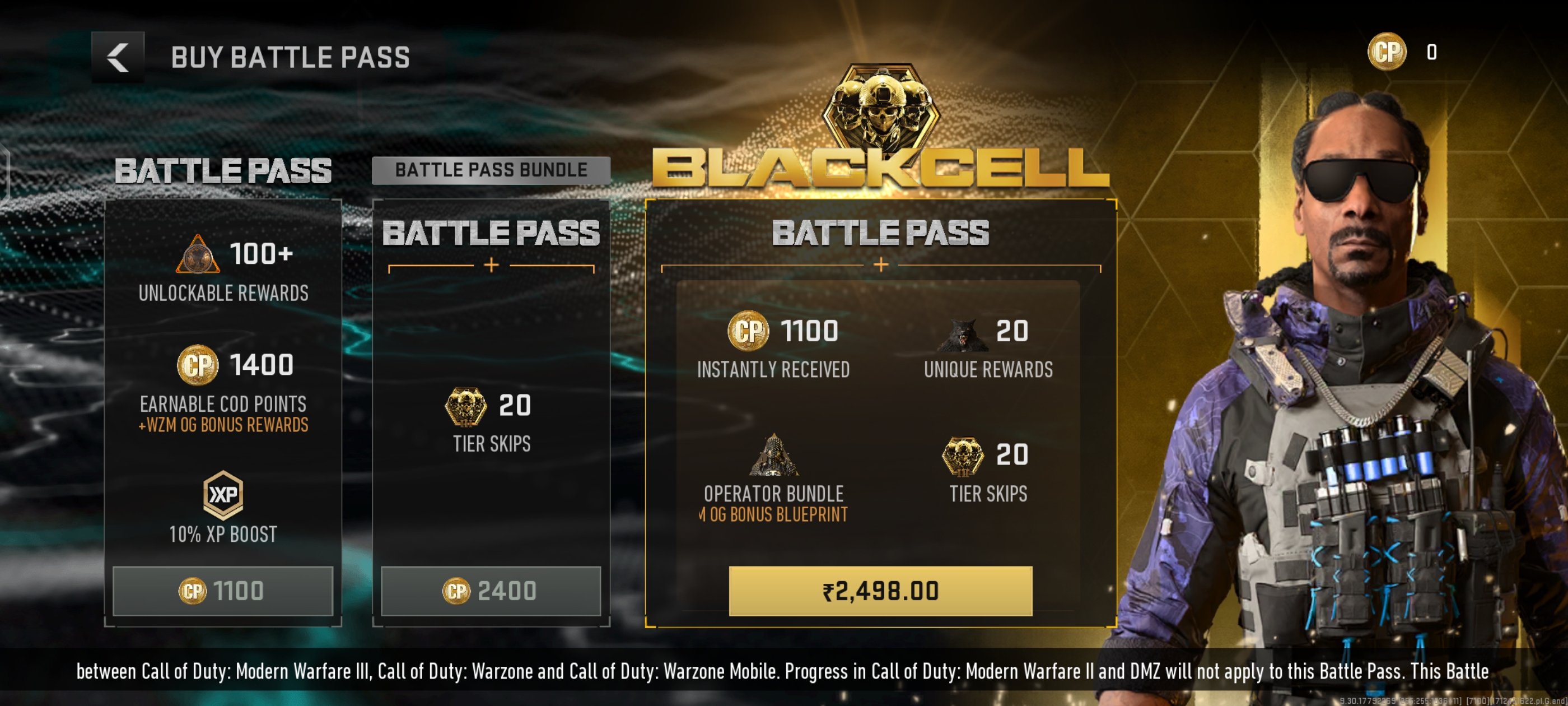 BlackCell content (purchase in MWIII, WZ or WZM, and progress in any of those games).