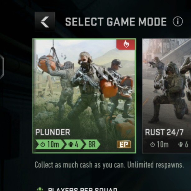 Battle to earn the most cash in this new game mode. Drop into Verdansk and loot cash from the map, complete contracts, and battle opponents to be the first team to earn $2 million in in-game cash. Reaching that cash threshold triggers a three-minute overtime where cash values double. Be the top-earning squad when time expires to win. Respawn is enabled in Plunder, and players always deploy with their selected Loadout. This makes Plunder ideal for leveling up weapons and exploring the map without the looming threat of an enclosing gas circle. The free-form nature also makes for a variety of viable strategies.