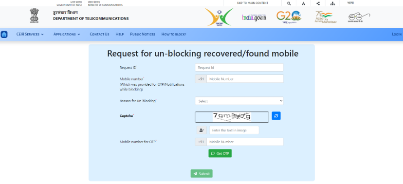 If your phone has been blacklisted, kindly visit the below-mentioned portal for unblocking.