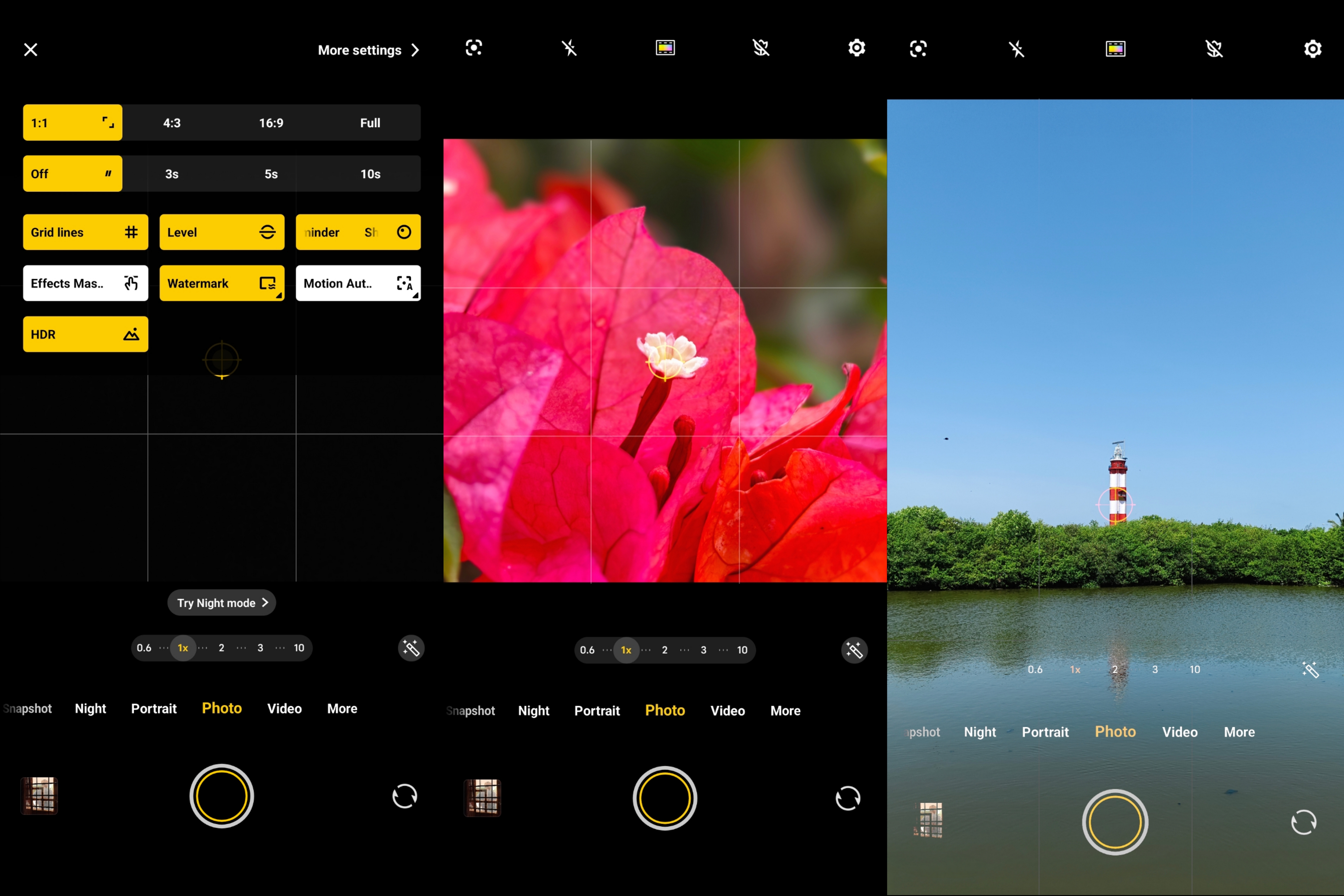 1️⃣ Grid Lines: Enable grid lines, and it will divide your frame into thirds, both horizontally and vertically, making it easier to align your subjects and create well-balanced compositions and symmetry. You achieve a well-balanced composition that draws the viewer's eye naturally through the scene. The grid acts as a guide, helping you create visually appealing photos with ease.